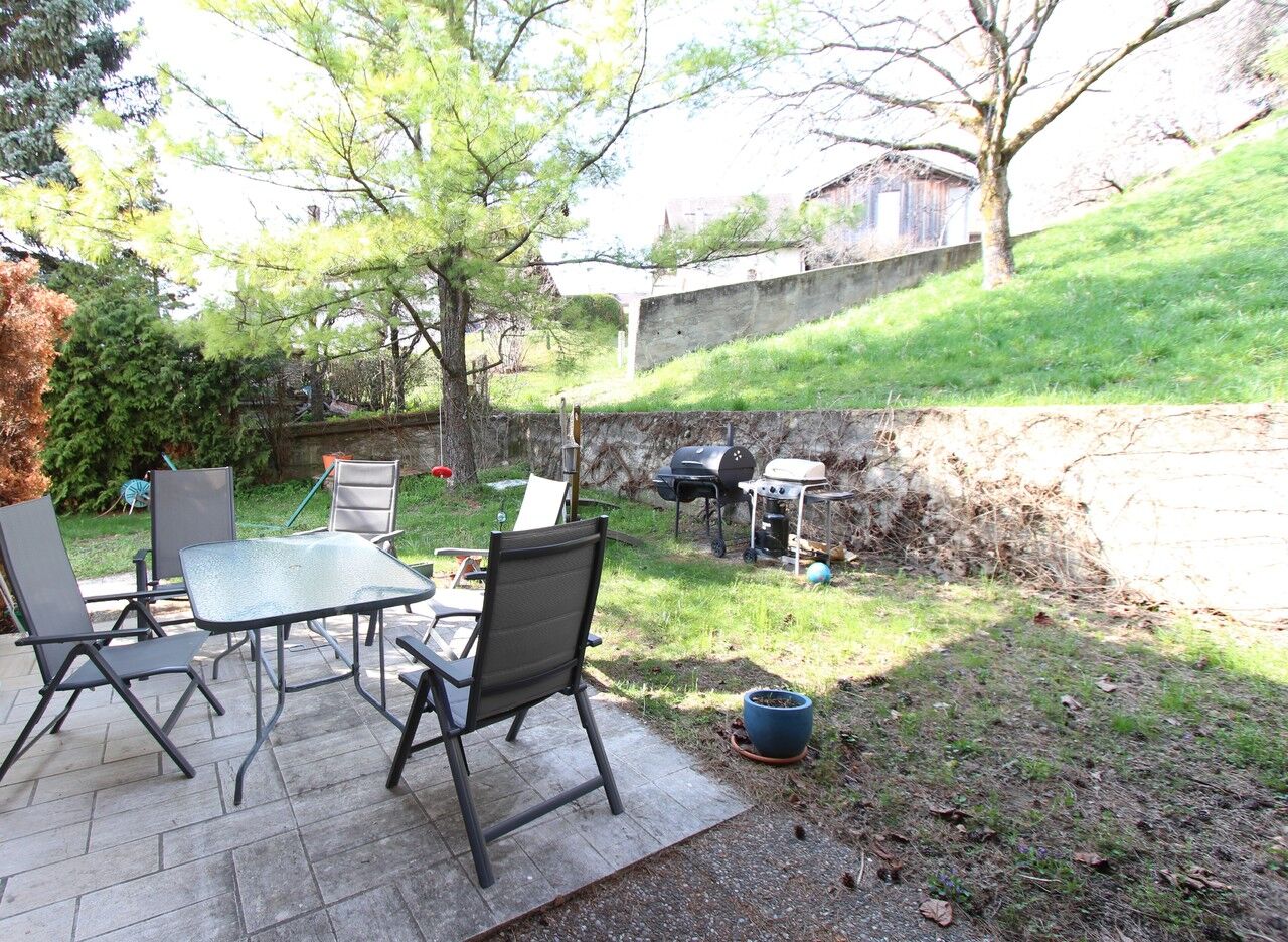 - Spacieux espace extérieur sans vis-à-vis composé d'un jardin, d'un coin à manger ainsi que d'un potager